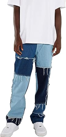 Men S Patchwork Pants High Waist Patch Jeans Bottom Denim Pants Vintage Loose Straight Leg Trousers Streetwear At Amazon Men S Clothing Store